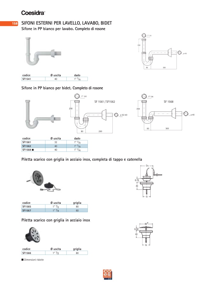 Piletta scarico con griglia in acciaio inox, completa di tappo e catenella
