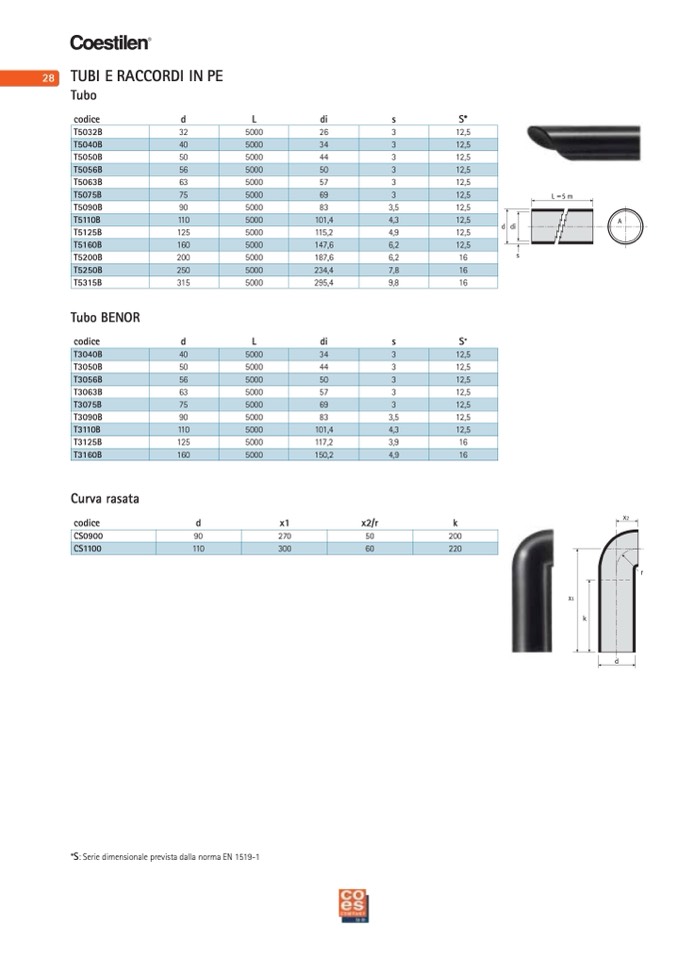 *S: Serie dimensionale prevista dalla norma EN 1519-1