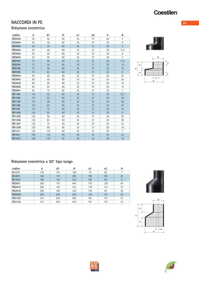Riduzione eccentrica a 30° tipo lungo