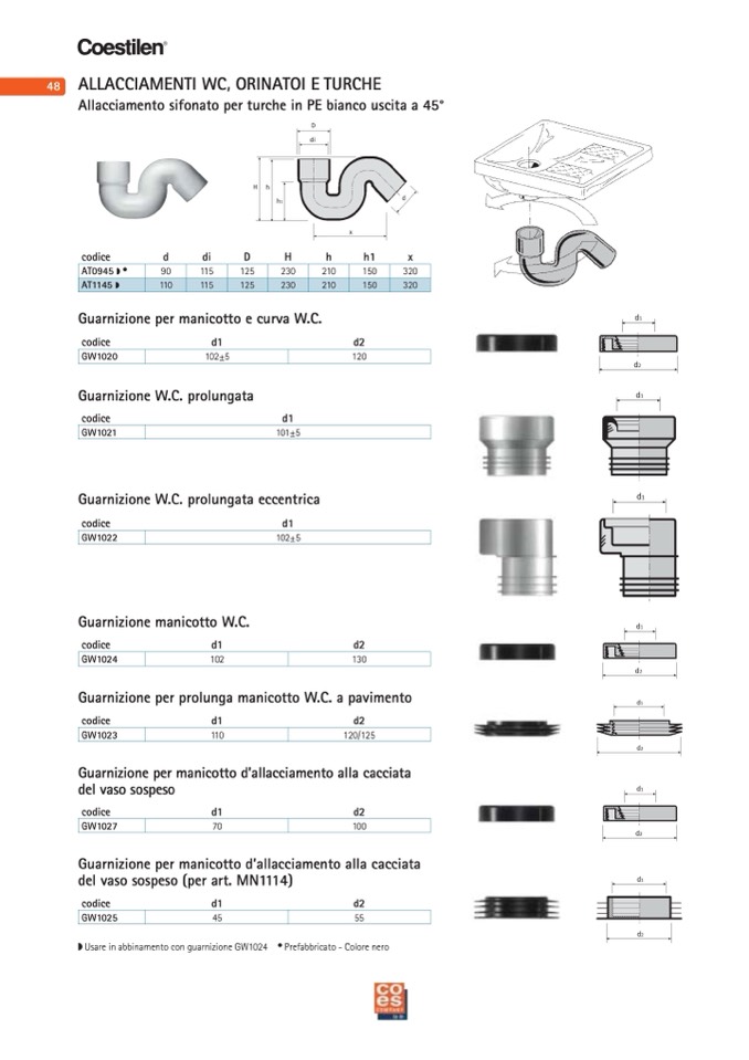 ◗ Usare in abbinamento con guarnizione GW1024 • Prefabbricato - Colore nero