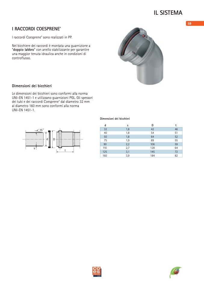 UNI-EN 1451-1 e utilizzano guarnizioni PGL. Gli spessori