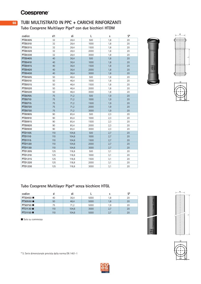 * S: Serie dimensionale prevista dalla norma EN 1451-1