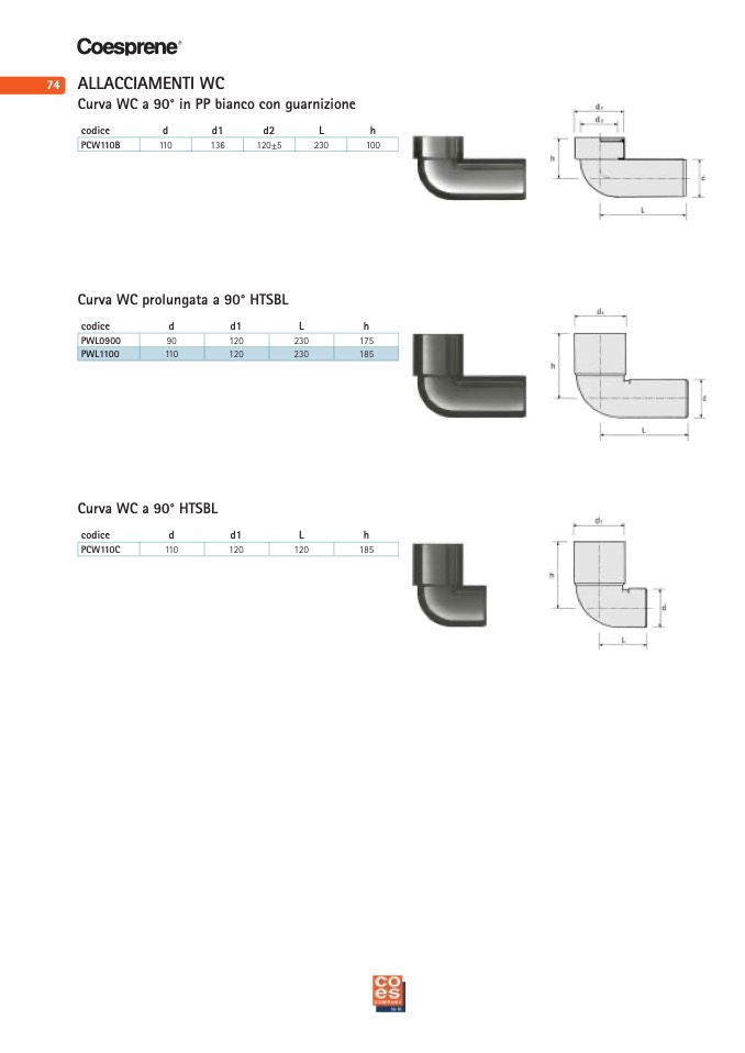Curva WC a 90° HTSBL