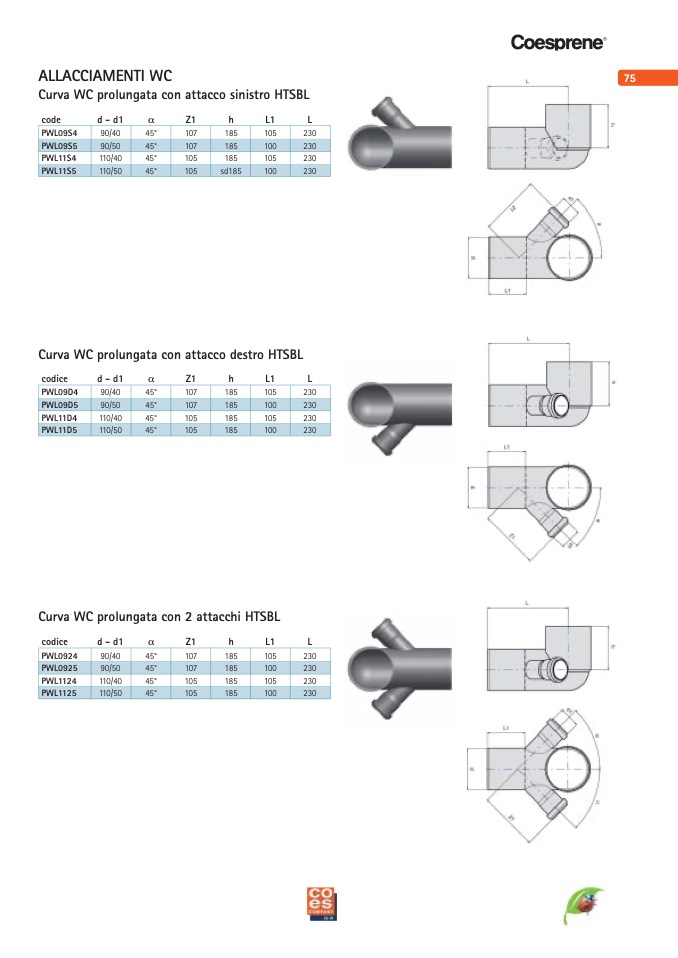 Curva WC prolungata con 2 attacchi HTSBL