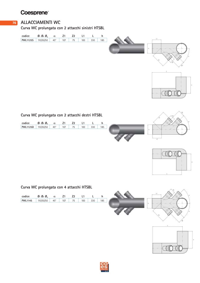 Curva WC prolungata con 4 attacchi HTSBL