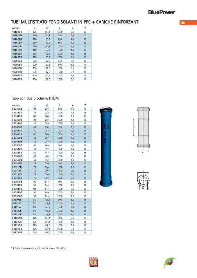 * S: Serie dimensionale prevista dalla norma EN 1451-1.