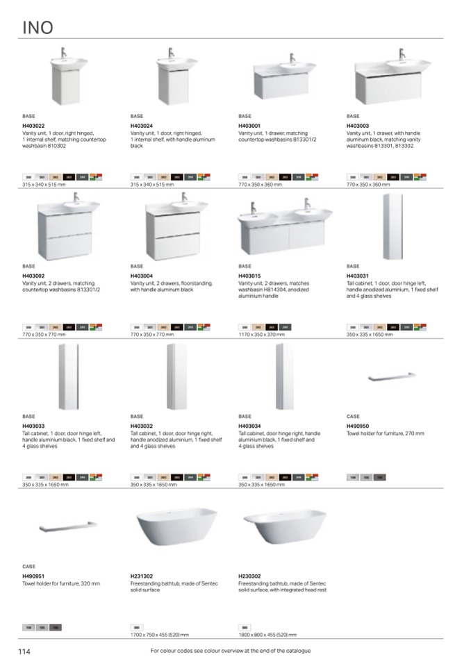 For colour codes see colour overview at the end of the catalogue