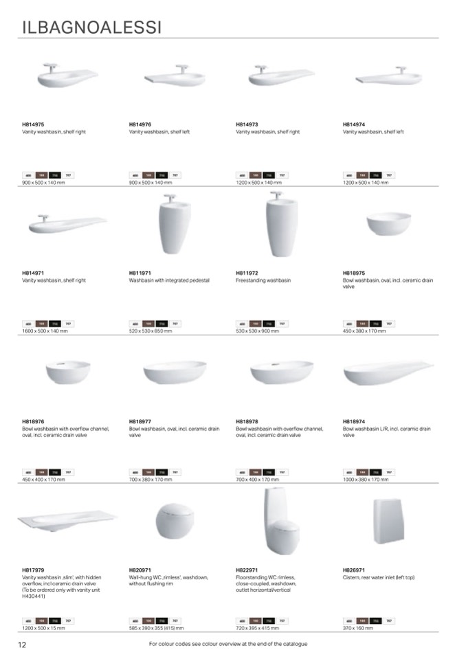 For colour codes see colour overview at the end of the catalogue