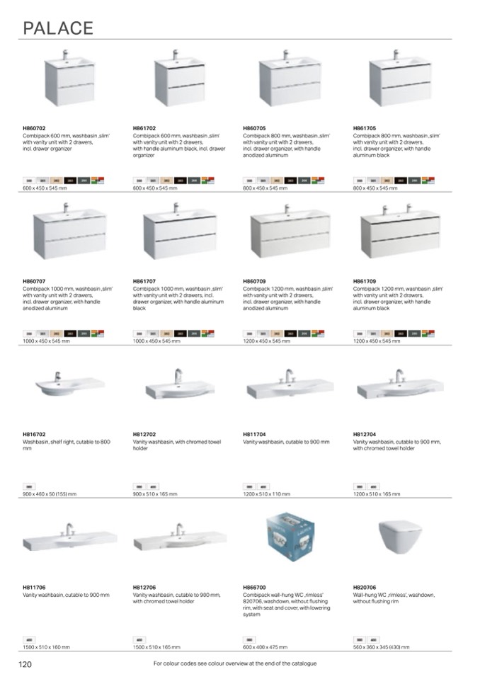 For colour codes see colour overview at the end of the catalogue