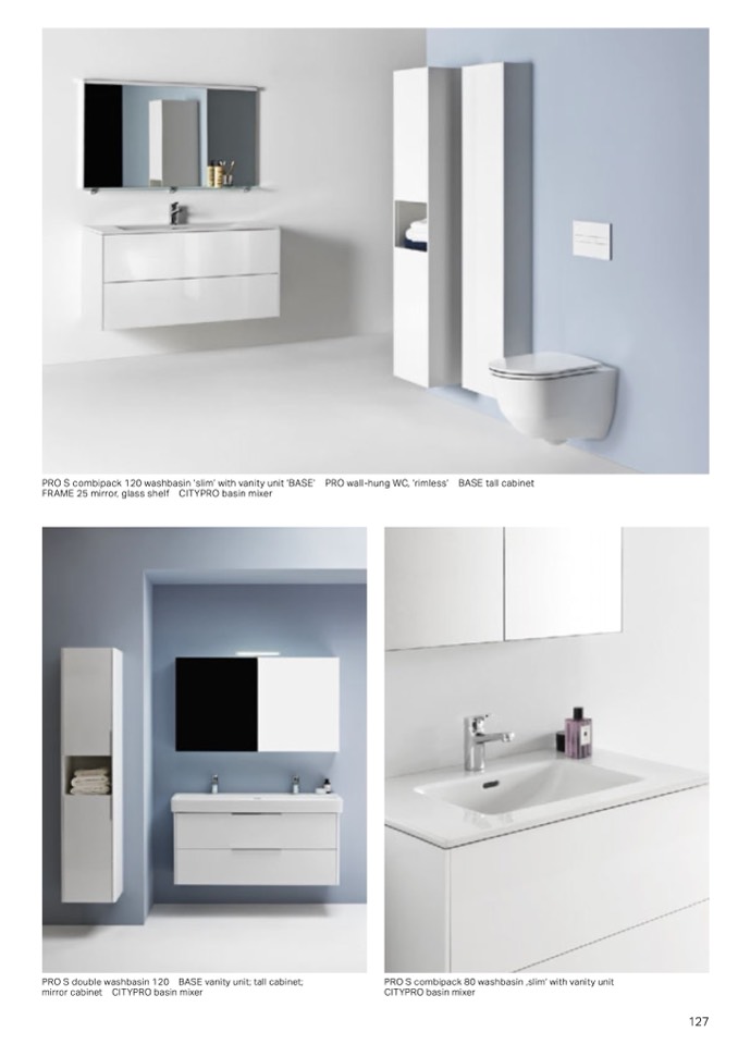 RO S combipac 120 washbasin ‘slim’ with vanity unit ‘BASE’ RO wall-hung WC, ‘rimless’ BASE tall cabinet