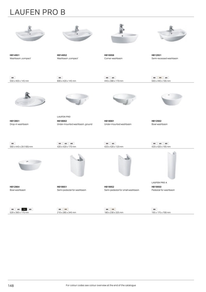 For colour codes see colour overview at the end of the catalogue