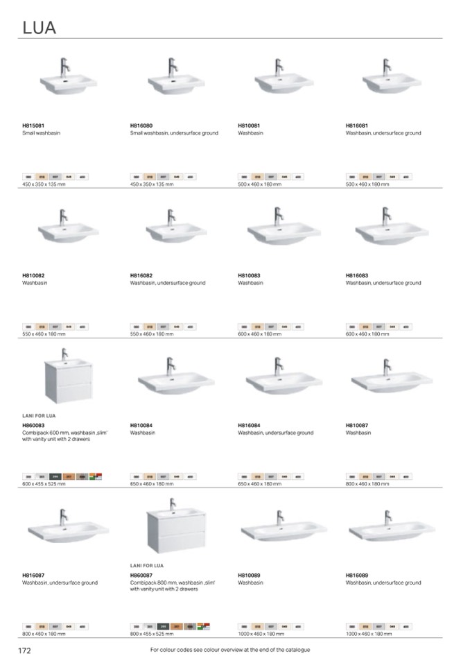 For colour codes see colour overview at the end of the catalogue