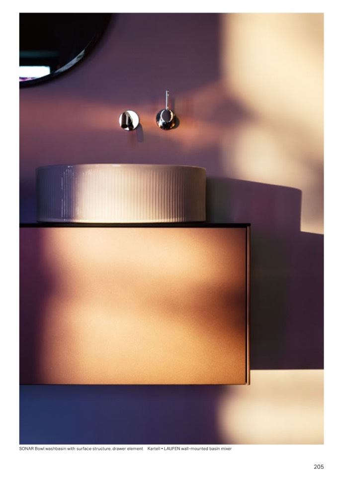 SONAR Bowl washbasin with surface structure, drawer element Kartell • LAUFEN wall-mounted basin mixer