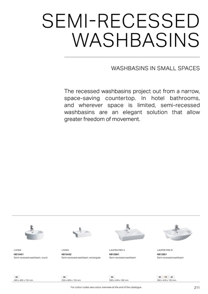 For colour codes see colour overview at the end of the catalogue