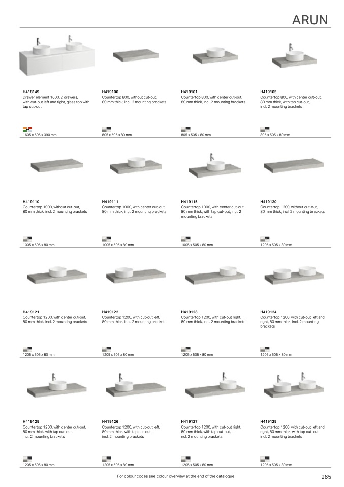 For colour codes see colour overview at the end of the catalogue