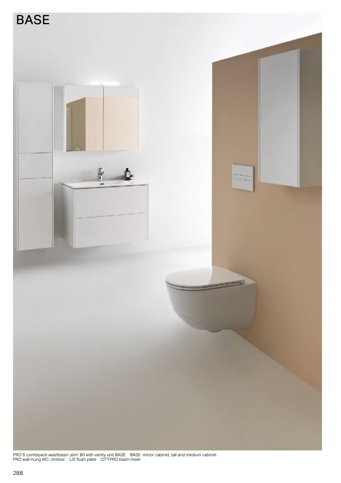 RO S combipac washbasin slim‘ 80 with vanity unit BASE BASE mirror cabinet, tall and medium cabinet