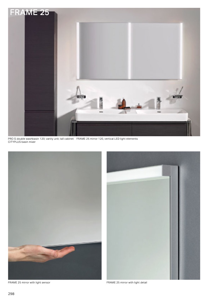 RO S double washbasin 120 vanity unit tall cabinet FRAME 25 mirror 120, vertical LED light elements