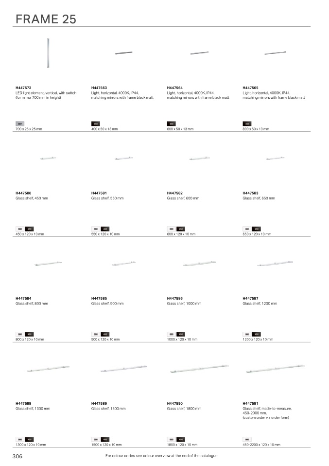 For colour codes see colour overview at the end of the catalogue