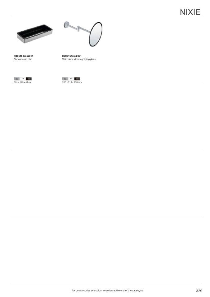 For colour codes see colour overview at the end of the catalogue