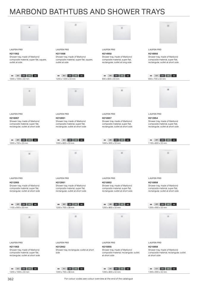 For colour codes see colour overview at the end of the catalogue