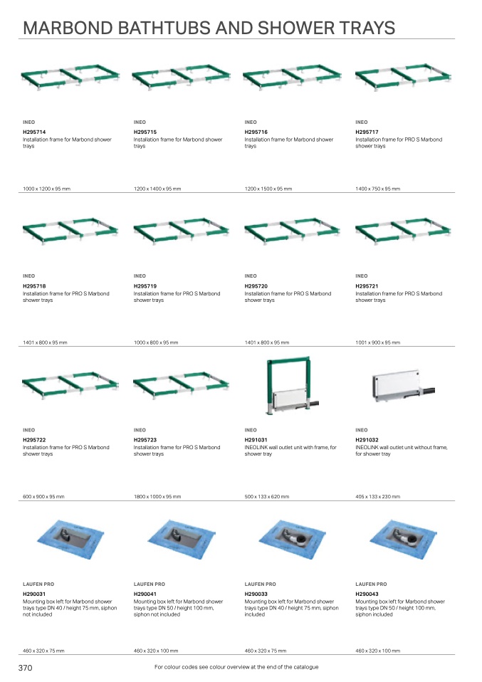 For colour codes see colour overview at the end of the catalogue