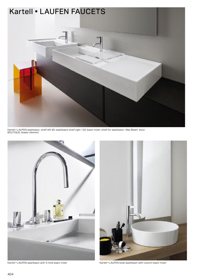 Kartell • LAUFEN washbasin, shelf left 60; washbasin shelf right 120; basin mixer; shelf for washbasin; ‘Max Beam’ stool
