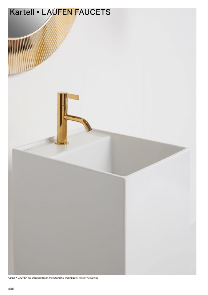 Kartell • LAUFEN washbasin mixer; freestanding washbasin; mirror ‘All Saints’