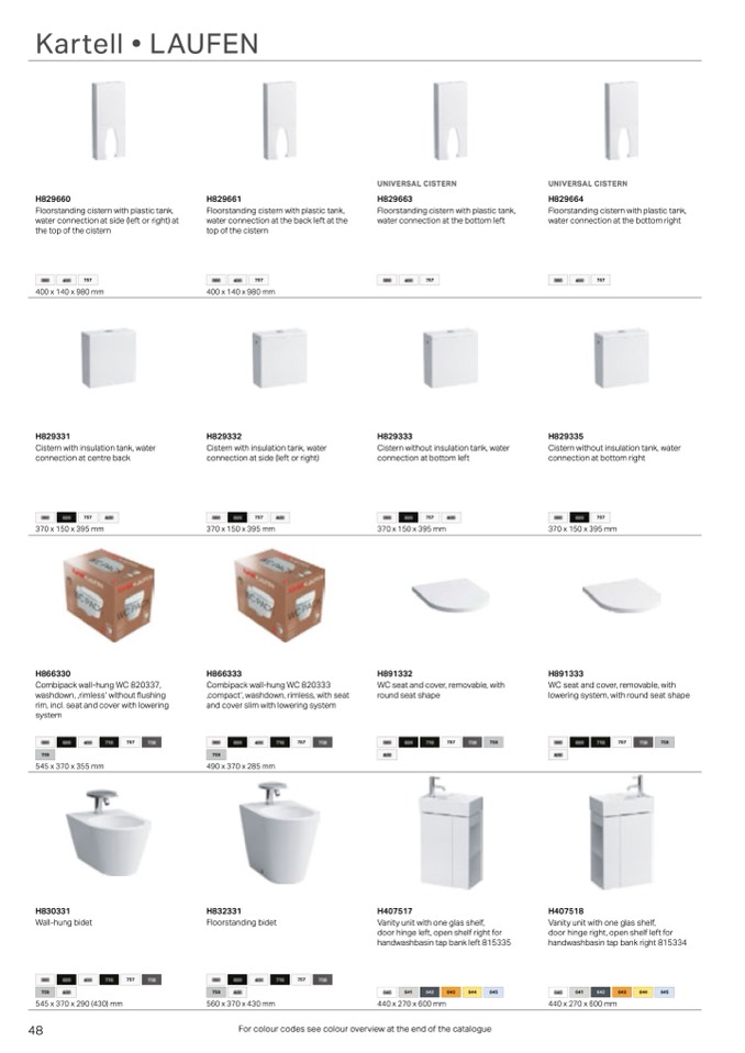 For colour codes see colour overview at the end of the catalogue