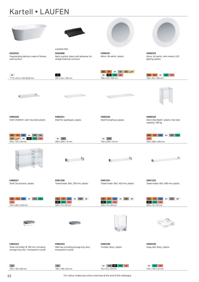 For colour codes see colour overview at the end of the catalogue
