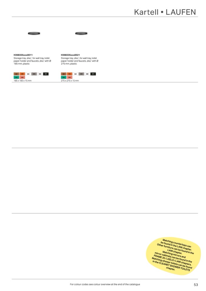 For colour codes see colour overview at the end of the catalogue