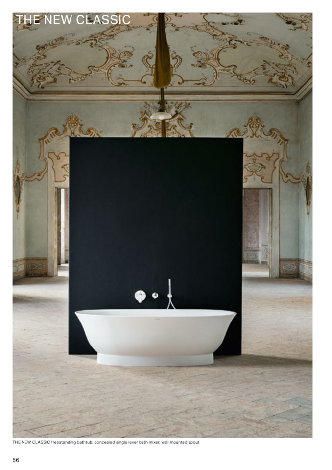 THE NEW CLASSIC freestanding bathtub; concealed single lever bath mixer; wall mounted spout