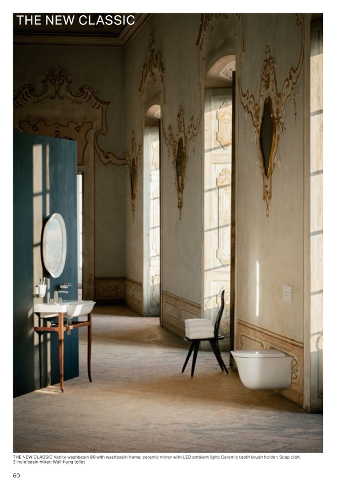 THE NEW CLASSIC Vanity washbasin 80 with washbasin frame; ceramic mirror with LED ambient light; Ceramic tooth brush holder; Soap dish;