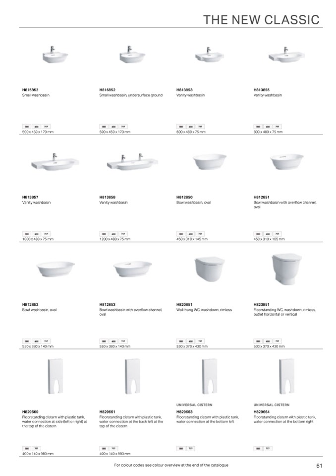 For colour codes see colour overview at the end of the catalogue