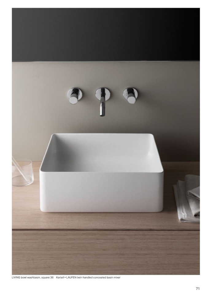LIIN bowl washbasin, suare 36 Kartell • LAUFEN twin handled concealed basin mixer