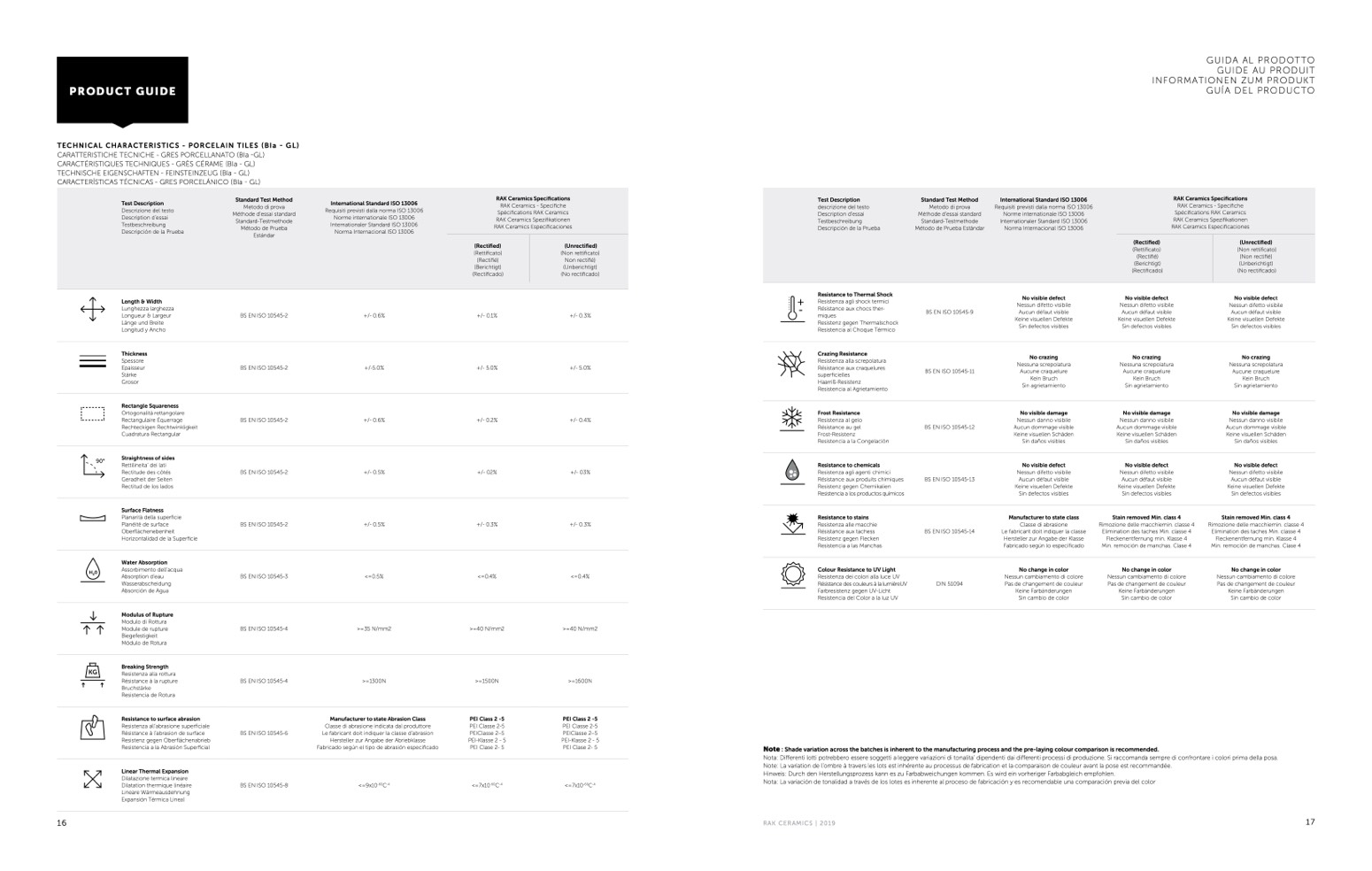 TECHNICAL CHARACTERISTICS - PORCELAIN TILES (BIa - GL)