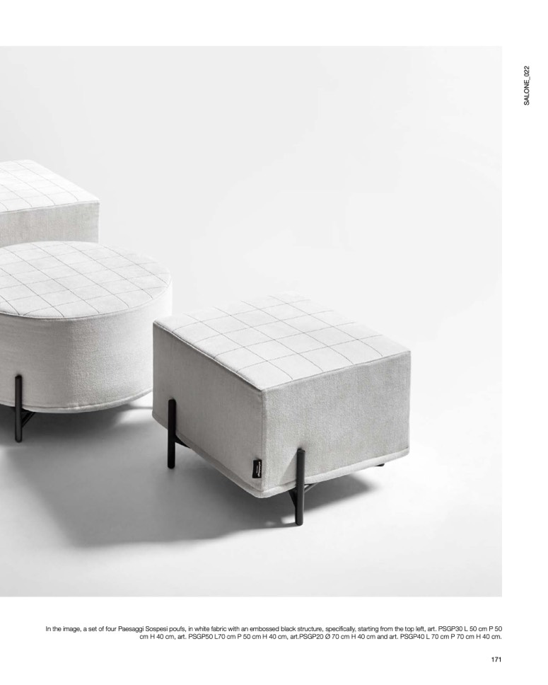 cm H 40 cm, art. PSGP50 L70 cm P 50 cm H 40 cm, art.PSGP20 Ø 70 cm H 40 cm and art. PSGP40 L 70 cm P 70 cm H 40 cm.