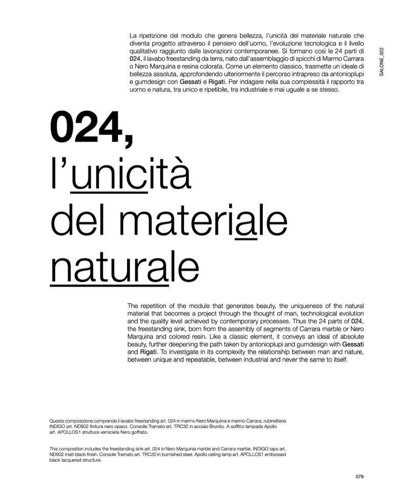 024, il lavabo freestanding da terra, nato dall’assemblaggio di spicchi di Marmo Carrara