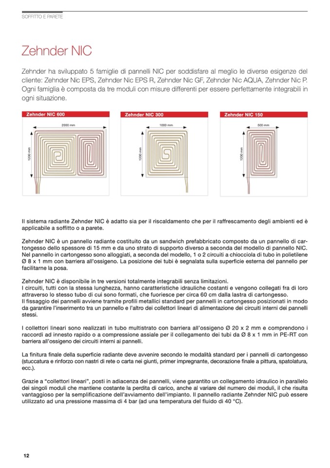 vantaggioso per la semplificazione dell’avviamento dell’impianto. Il pannello radiante Zehnder NIC può essere