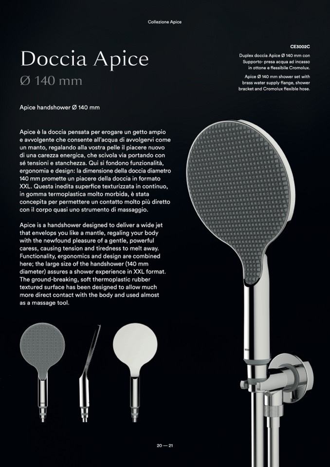 Apice is a handshower designed to deliver a wide jet