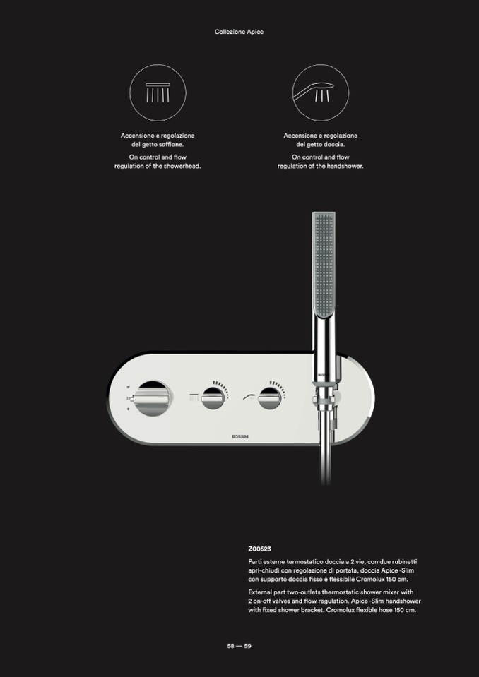 2 on-off valves and flow regulation. Apice -Slim handshower