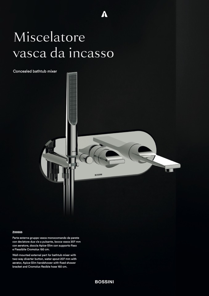 con deviatore due vie a pulsante, bocca vasca 207 mm