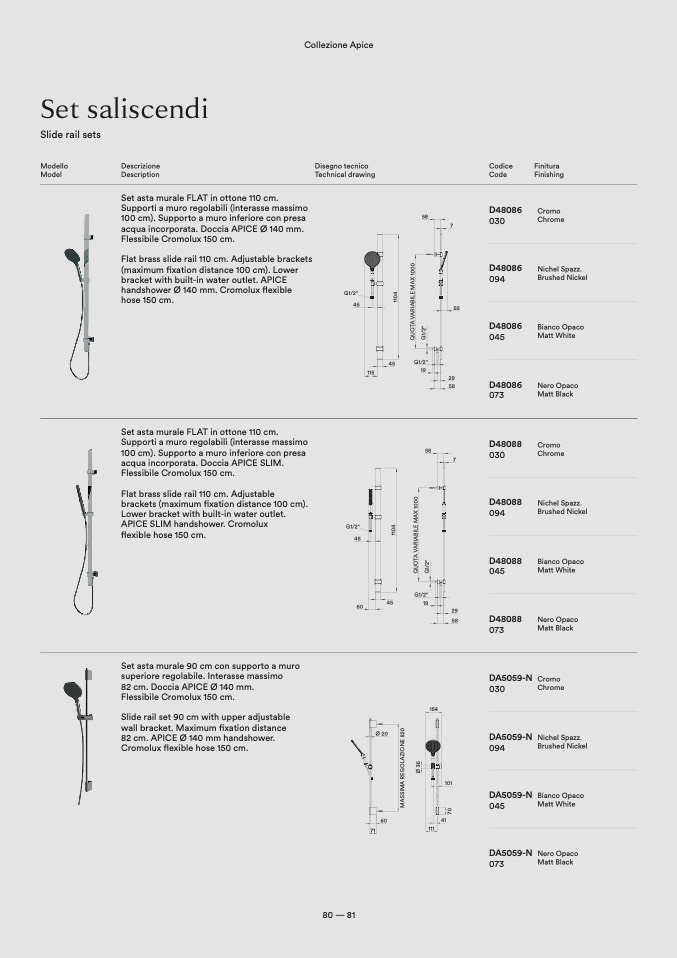 82 cm. APICE Ø 140 mm handshower.