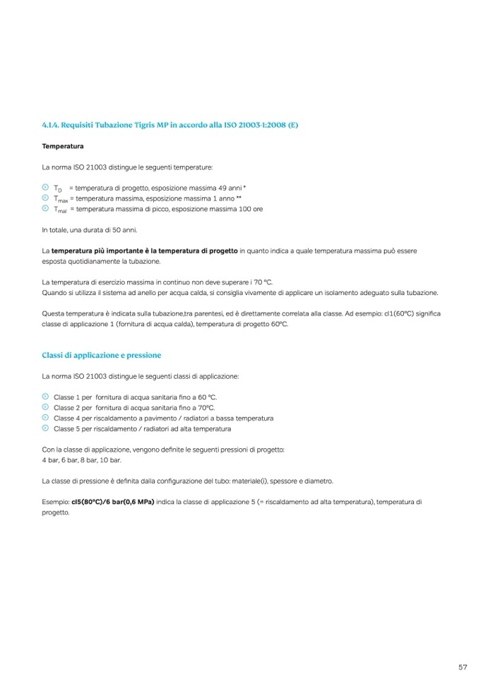 4.1.4. Requisiti Tubazione Tigris MP in accordo alla ISO 21003-1:2008 (E)