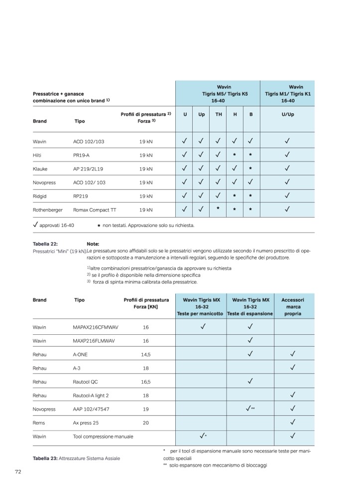 altre combinazioni pressatrice/ganascia da approvare su richiesta