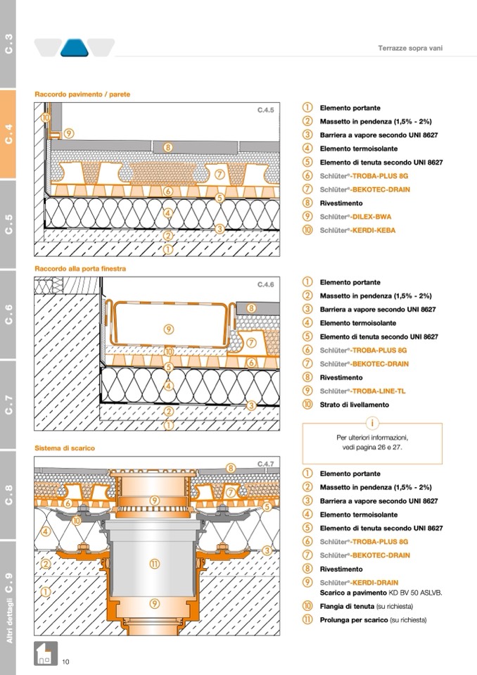b Massetto in pendenza (1,5% - 2%)