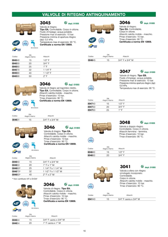 Valvole di ritegno. Tipo EB.