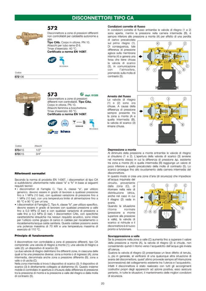 Secondo la norma di prodotto EN 14367, i disconnettori di tipo CA