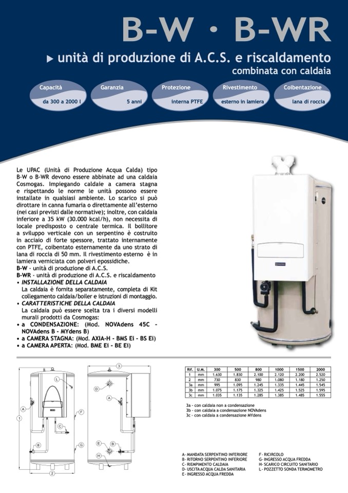 B-W o B-WR devono essere abbinate ad una caldaia