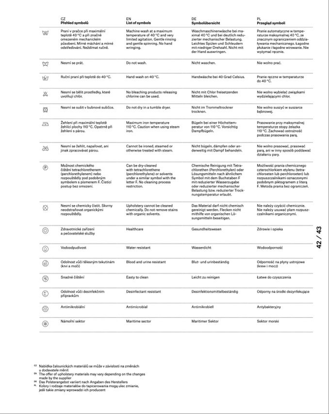 The offer of upholstery materials may vary depending on the changes