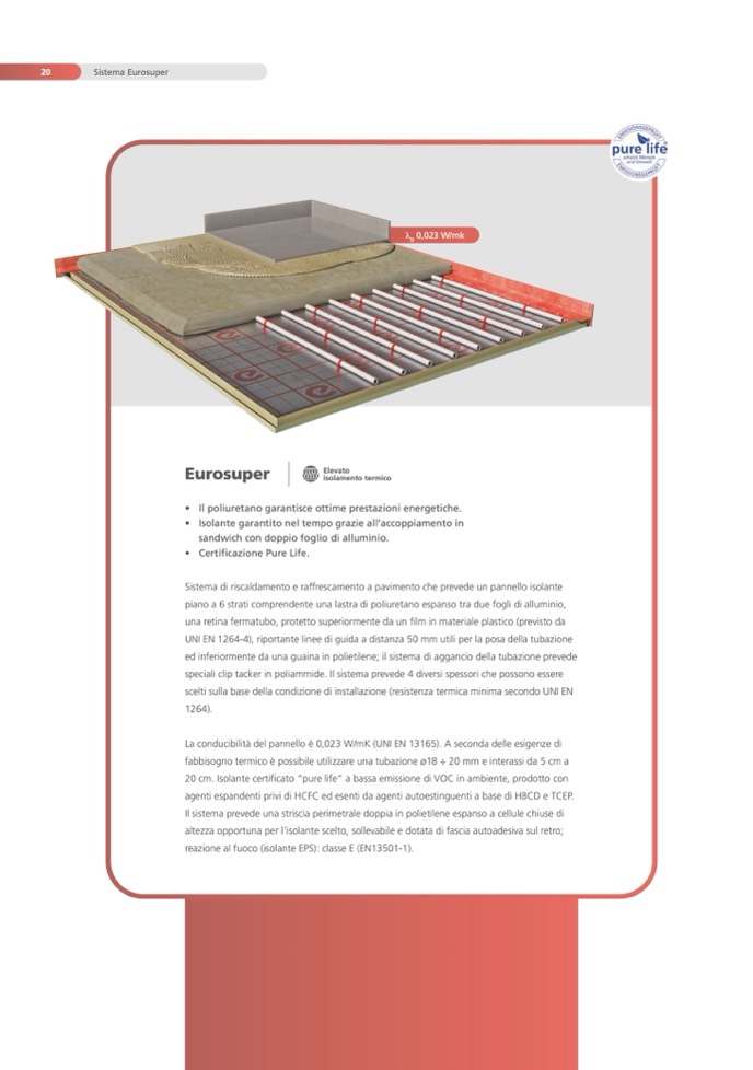 20 cm. Isolante certificato “pure life” a bassa emissione di VOC in ambiente, prodotto con
